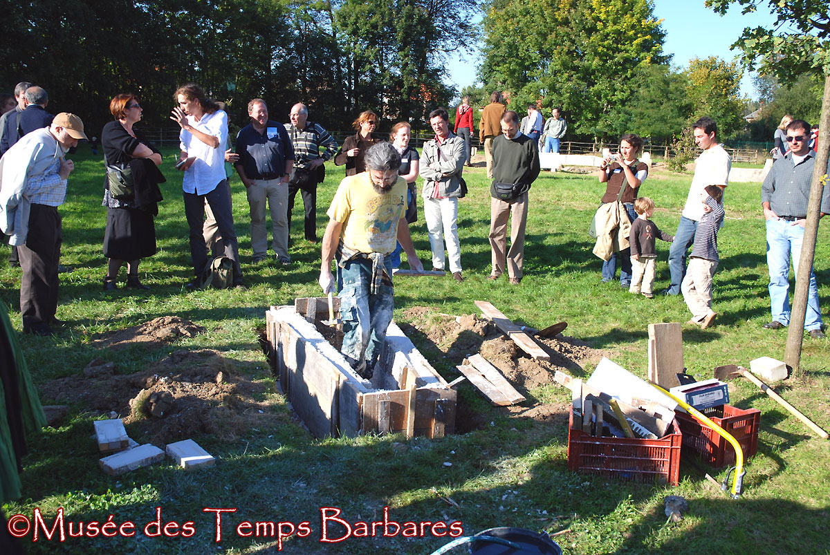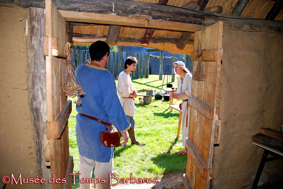 Samedi après-midi, par un soleil radieux, sous la conduite d’Alain Nice et de Didier Bayard***, tous les participants ont pu découvrir les collections du Musée, la ferme mérovingienne reconstituée d’après les fouilles d’habitat de Goudelancourt les Pierrepont puis le village franc reconstitué réalisé à partir de la fouille du site de Juvincourt et Damary. La visite s’est poursuivie ensuite jusqu’au cimetière mérovingien reconstitué.