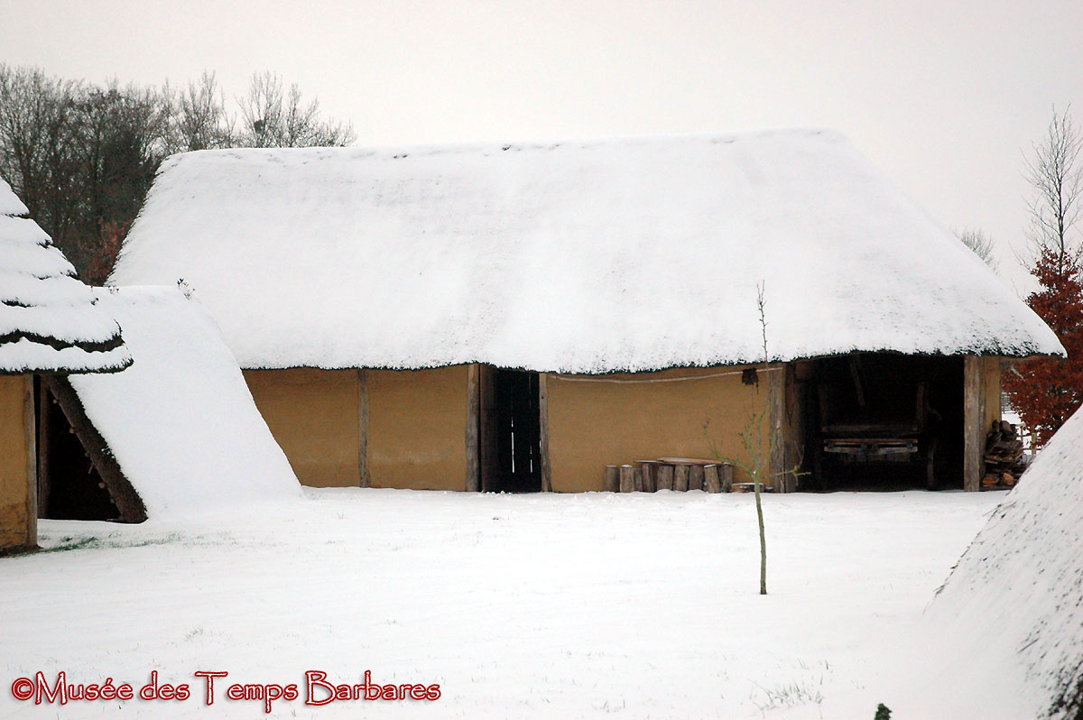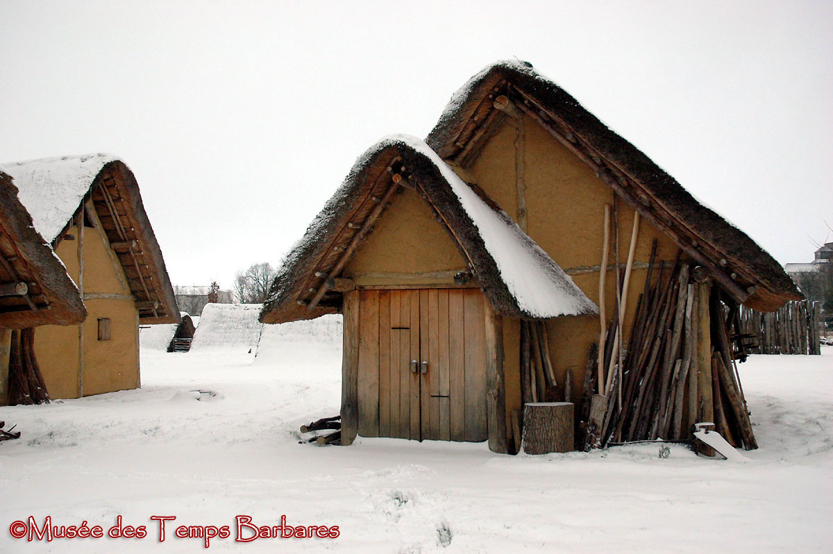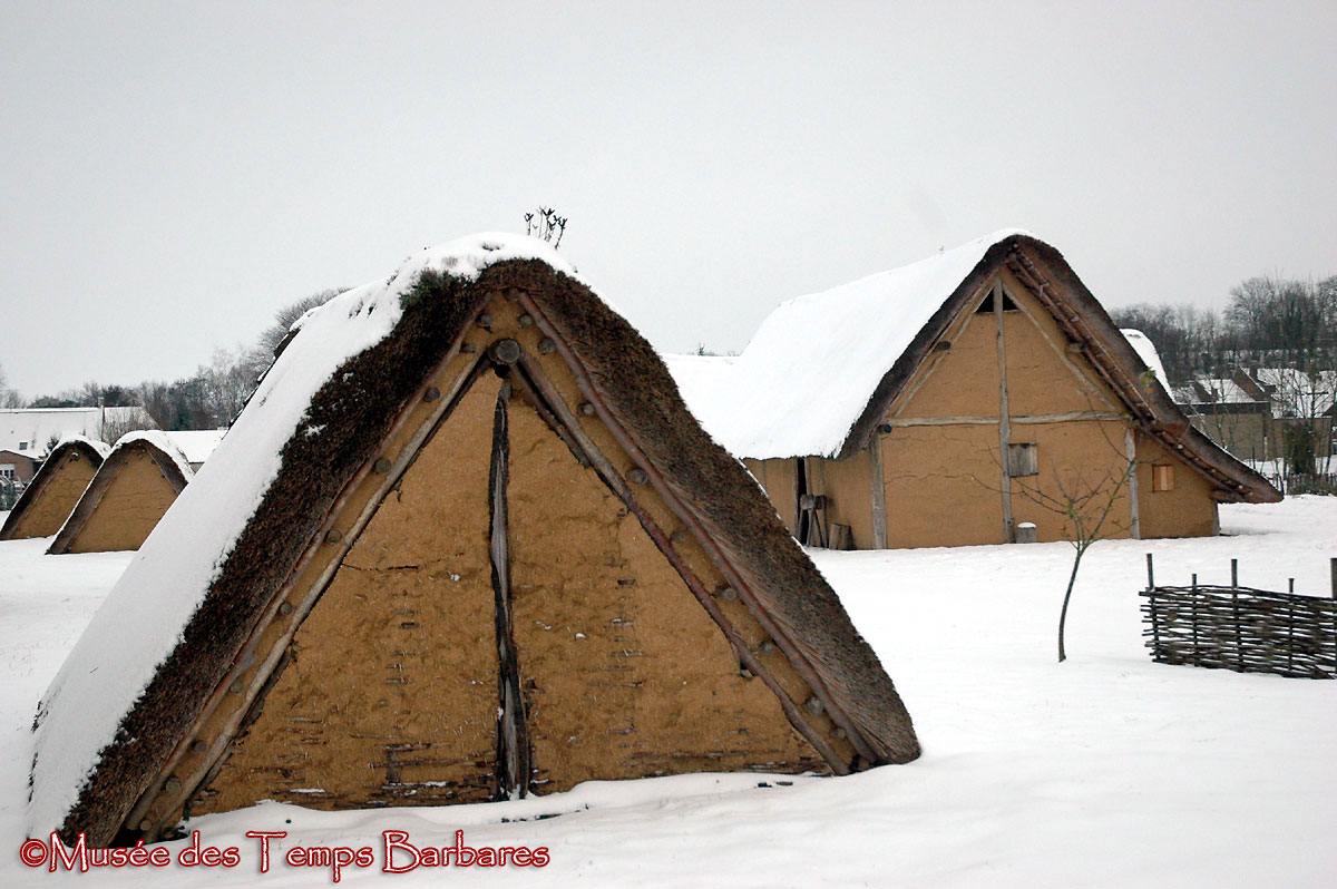 Spectacle rare à Marle : le Village franc sous la neige ! Il est rare pour nous, Francs de Marla Curtis, mais davantage pour le visiteur puisque le Musée est fermé l’hiver.